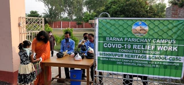 Bishnupur Heritage School, founded in 2015, located at Barnaparichay Campus in the lap of nature, far from the madding crowd. It is located on the Southern Point of historical Lalbandh and only 500 meter away towards the south of famous Kalachand, (Gouranga Mahaprabhu) temple of Bishnupur. Bishnupur Temple Town is being very close to Bishnupur Heritage School, the cultural traditions of Bishnupur cast a magic spell all around. The setting is serene and solemn and entirely free from pollution and disturbances. The premises is vibrant with note of birds, whispering breeze and mesmerizing fragrance of flowers. The place is ideal for teaching and praying.