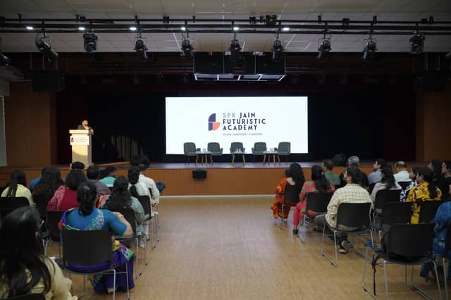 Teaching faculty is the most vital resource of any school and to ensure that teachers are skilled to deliver this progressive pedagogy, the school has brought in training programs of international standards by Montessori and Cambridge academies.Since the mantra of the school is working towards future citizens who are not only academically competent but also bear a genuine sense of responsibility towards the society, it is imperative to provide a holistic learning environment for them. Sustainability is something that is inculcated and practiced on an everyday basis in school.They get involved in water preservation, waste management, and plantation and nurturing of plants at school and in their houses. Students are encouraged to read the daily newspaper and share opinions about current social and political scenarios. Collaboration is strongly encouraged both in academics and in sports. While creative writing, public speaking and performing arts classes provide an avenue for self-expression, Robotics and coding classes hone their critical thinking skills and martial arts and various sports activities enable physical fitness along with self-discipline.The school boasts an infrastructure that is at par with the best international schools in the country. Huge spacious open classrooms flooded with natural light is the hallmark of the school. Walls and furniture have a neutral décor to enable a calm environment that is best conducive for learning. The rigidity of rows of seats and the suffocating confinement of four walls is missing – and this open classroom concept renders a boundless, organic learning experience. There are multiple learning corners in each classroom with materials curated as per the theory of multiple intelligence and every child is motivated to learn by actively exploring. Every classroom is equipped with lab equipment and a library of its own- so a grade 1 child observing a plant cell or the like under a microscope is a common sight at SPK Jain Futuristic Academy.